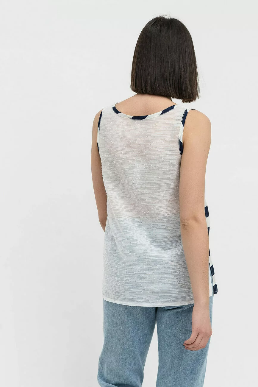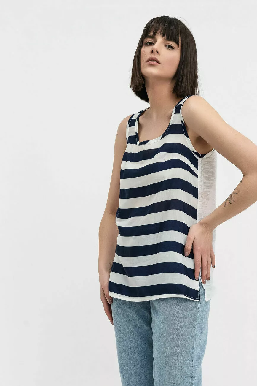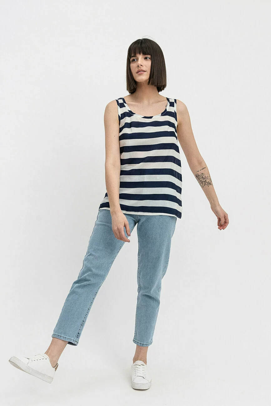 Найбільш літнім елементом гардеробу є майка. Вона здатна дуже гідно представити верхню частину жіночої фігури, якої особливо пишаються дами з пристойним розміром бюста. Майка пряма в горизонтальну смужку комбінується з однотонною нижньою частиною. Це можуть бути спідниці, брюки, кілоти, шорти, але найулюбленішими є джинси. Віскозний шовк «Армані» з целюлозними волокнами утворює м'яку, тактильно приємну тканину. Невеликий глянсовий відлив привертає увагу і надовго зберігає експлуатаційні характеристики при правильному догляді за тканиною.