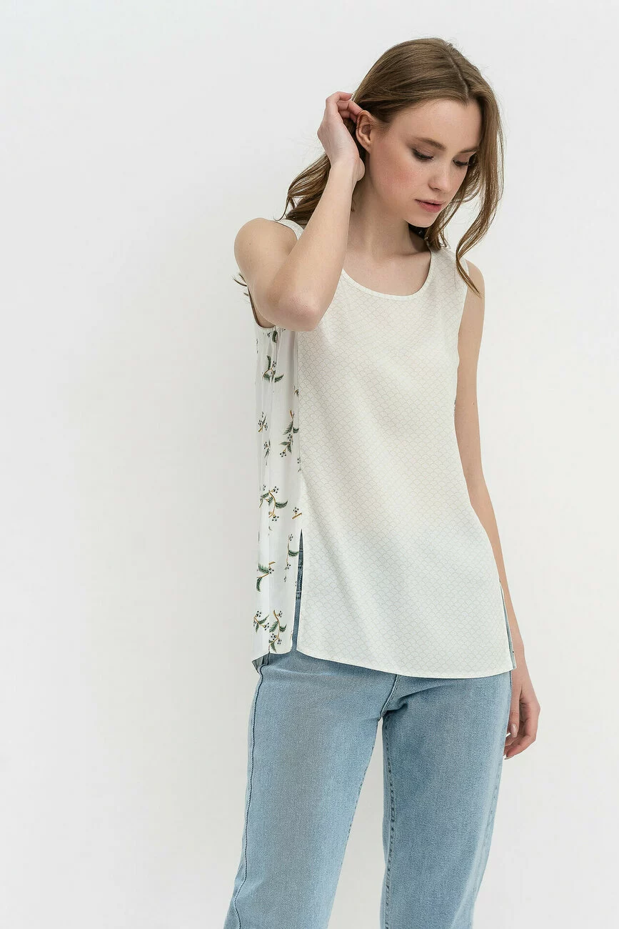 Поступово в моду все частіше входять трансформуючі речі, або ті, вид яких залежить від положення вашого тіла. В цьому щось є. Як в цій блузі, наприклад, молочного кольору, дивлячись на яку з обличчя ти бачиш ніжне творіння в цяточку, а зі спини немов трав'яний настил, вступаючи в суперечку з природою за автентичність форм.