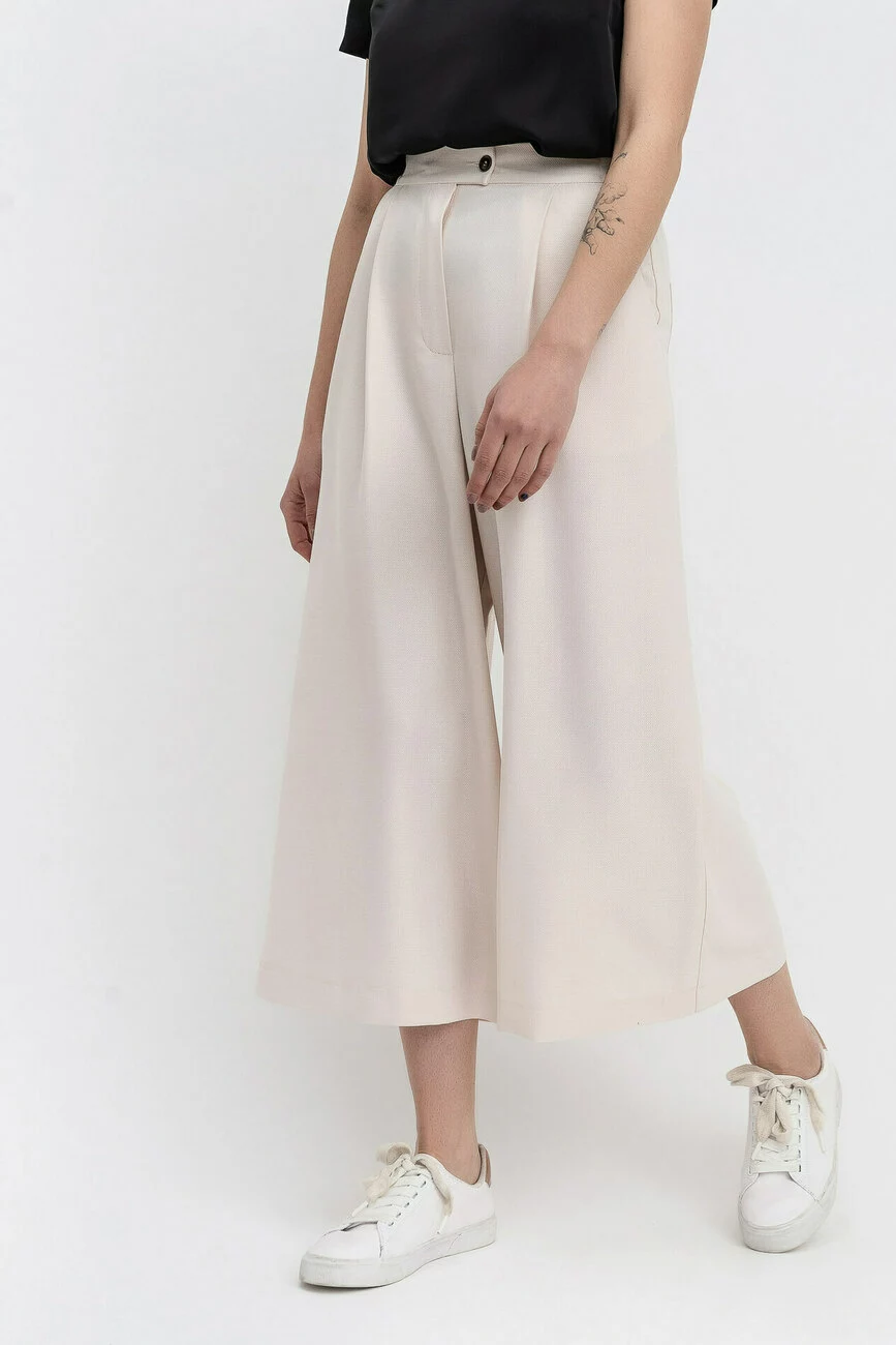 Для теплої весни й спекотного літа шукаєте «низ» образу, який би гармоніював з класичними блузами та підходив для роботи в офісі? Пропонуємо купити жіночі штани-кльоші з комфортного жаккарда бежевого відтінку. Вшивний пояс, зручна посадка на талії, романтичні складки й зручні кишені роблять ці жіночі штани надзвичайно стильними. У новій колекції LESIA тільки елегантний жіночий одяг для стильних дам, яким подобається бути в тренді!