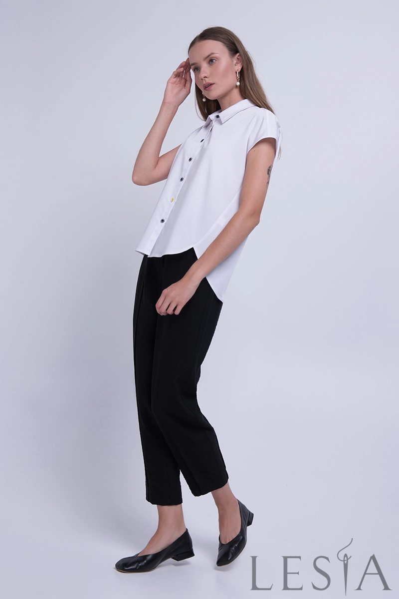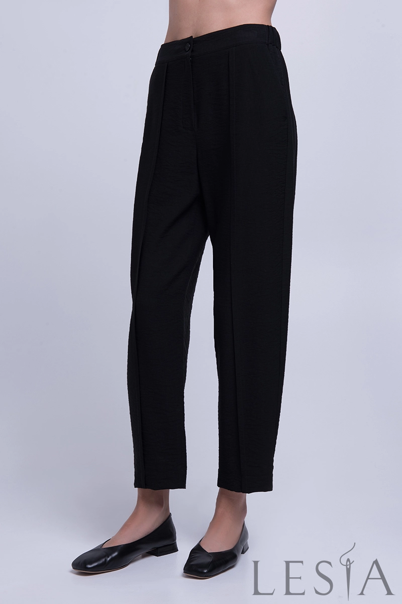 Модель має прямий крій, штанини скорочені та злегка завужені до низу. По боках є кишені. Застібається виріб на блискавку. Універсальний фасон жіночих штанів дозволяє підібрати різні варіанти верху, створюючи таким чином цікаві образи у діловому стилі!