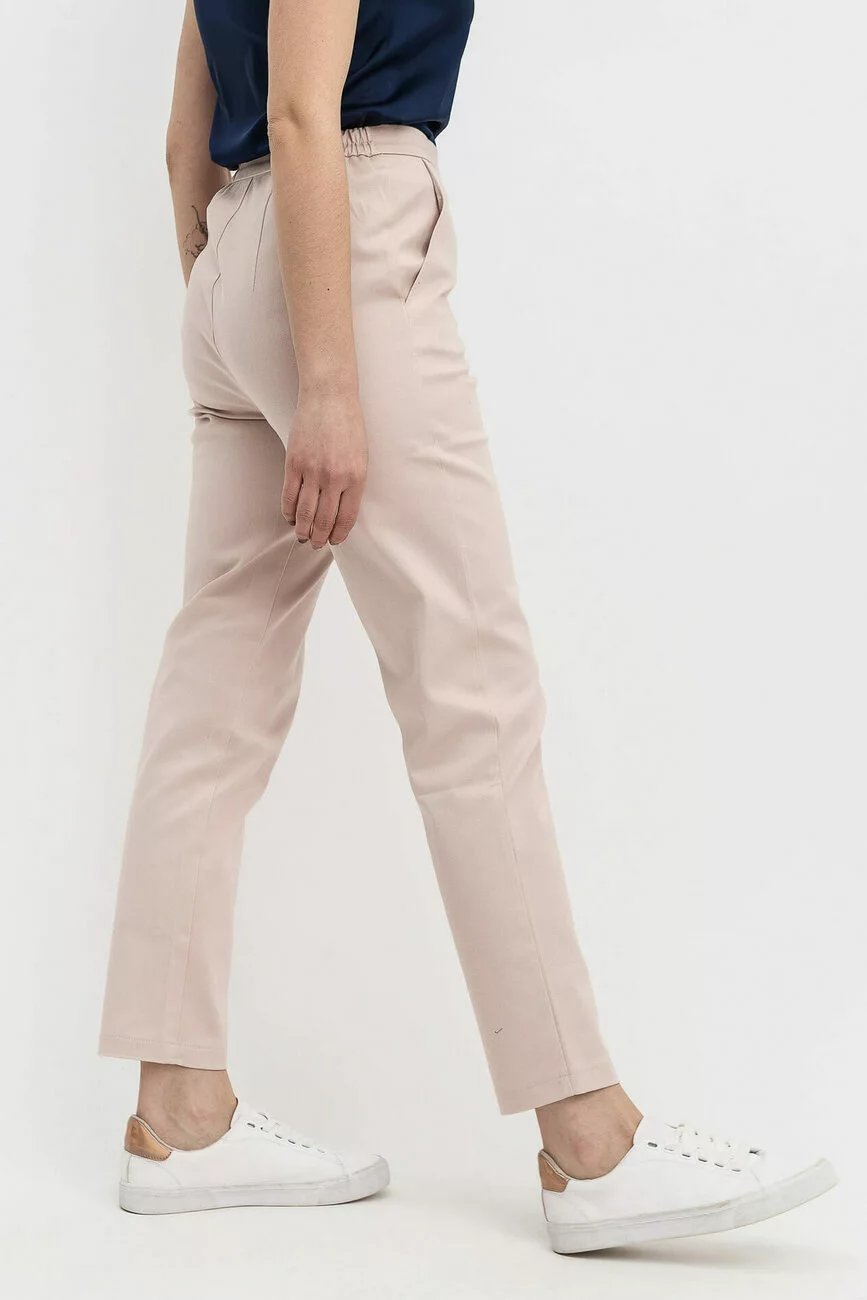 Ця модель відповідає всім модним тенденціям, а також є зразком комфортності! Серед переваг варто виділити середню посадку та злегка вкорочену довжину брюк. А для того, щоб пасок не передавлював лінію талії, по боках є вставки на резинці. Такі штани можна носити як із взуттям на підборах, так і з балетками на низькому ходу. Інтернет-магазин жіночого одягу LESIA пропонує різноманітні моделі для весняно-літнього сезону, в тому числі і ці жіночі стильні штани!