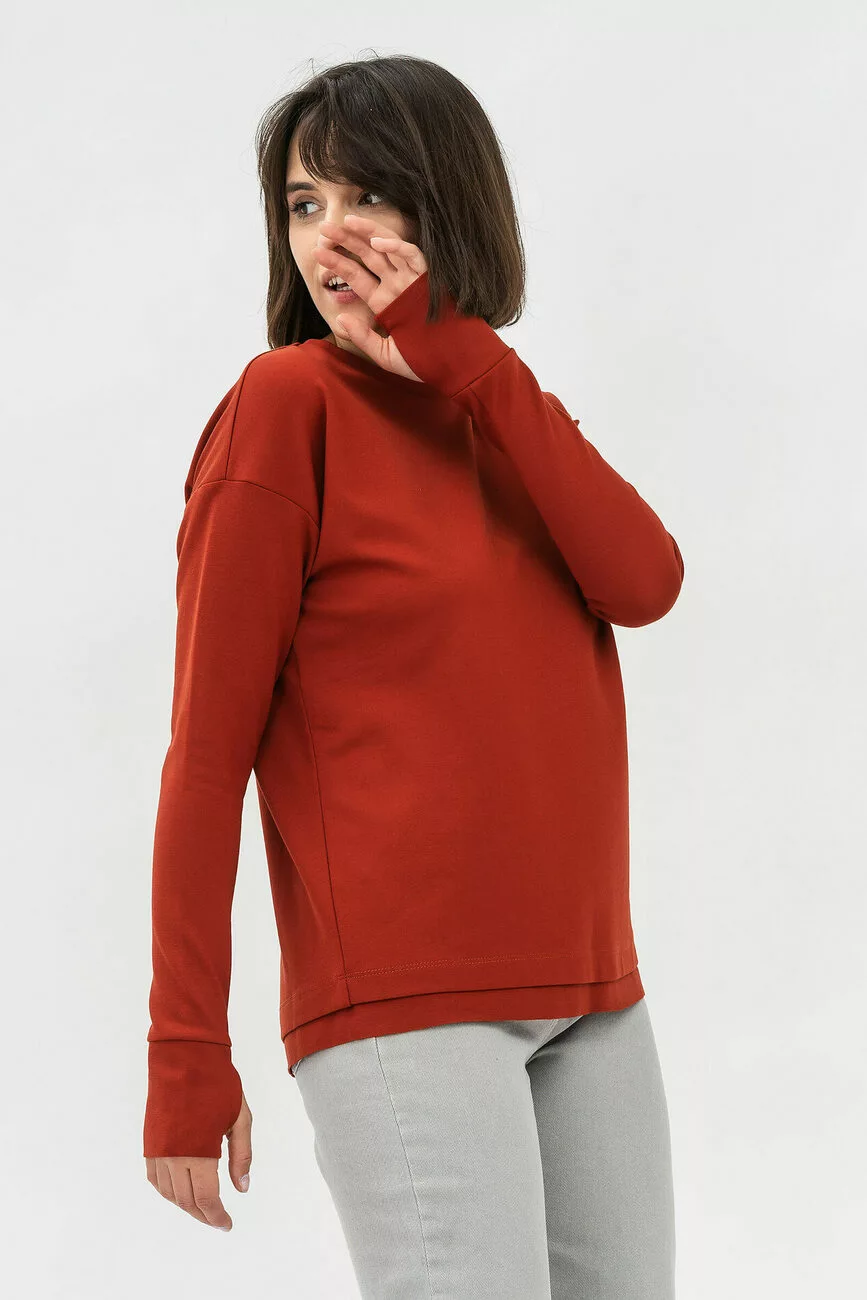 Лаконічна блуза жіноча з трикотажу подарує абсолютну свободу! Виріз горловини округлий. Рукави довгі, досить широкі, внизу є манжети із розрізом для пальця. Приспущена лінія плечей полегшує верх. Внизу є широка оздоблювальна деталь. Наш інтернет-магазин жіночого одягу пропонує широкий вибір комфортних моделей, які покращують настрій, особливо у холодну пору року.