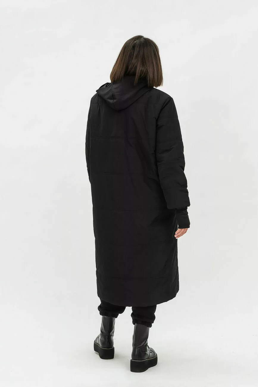 Подовжене пальто жіноче із плащівки з утеплювачем допоможе забути про холод та дискомфорт! Силует прямий, розширений до низу та доповнений стяжкою. Рукави довгі, вшивні, внизу – трикотажні із розрізом під палець.