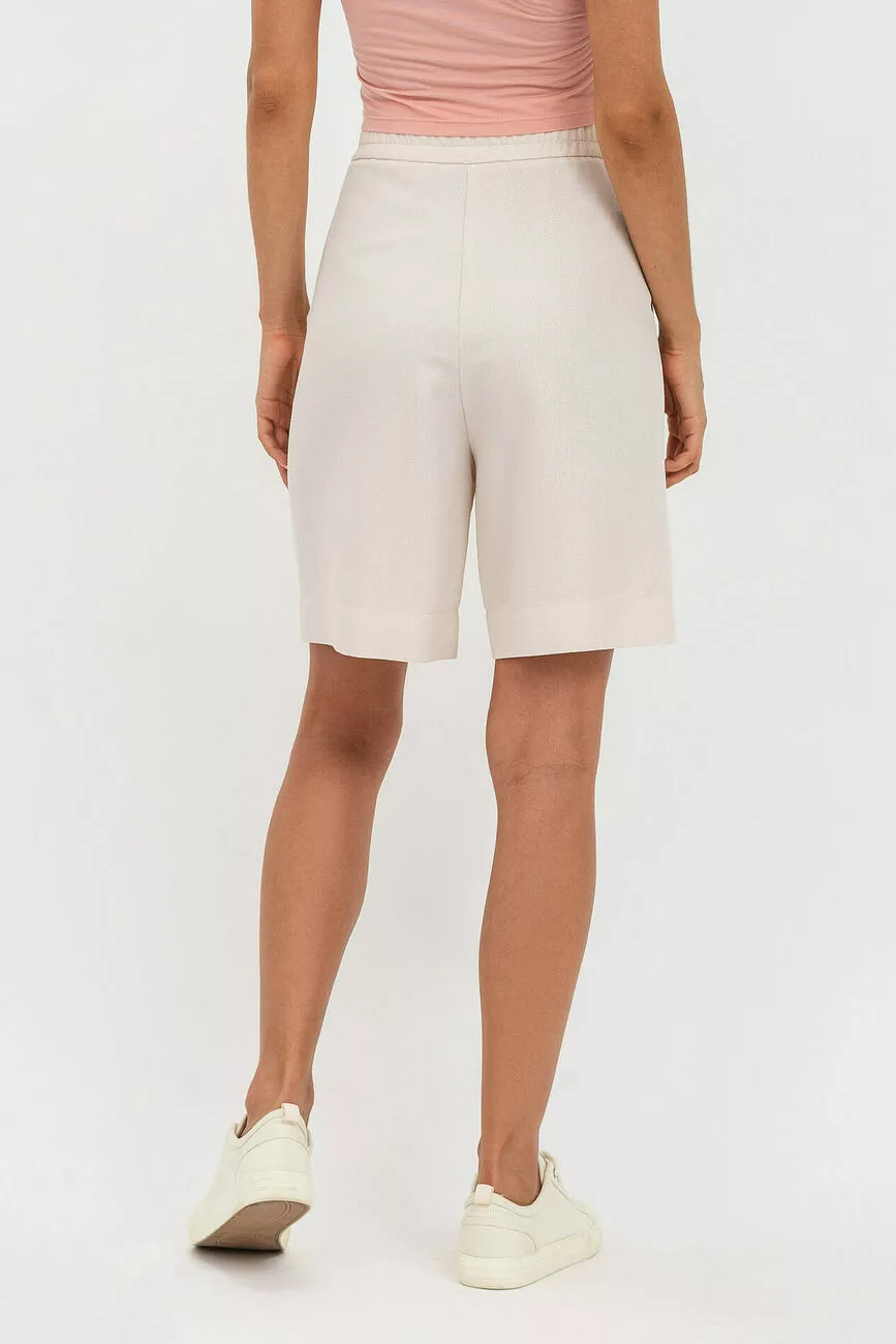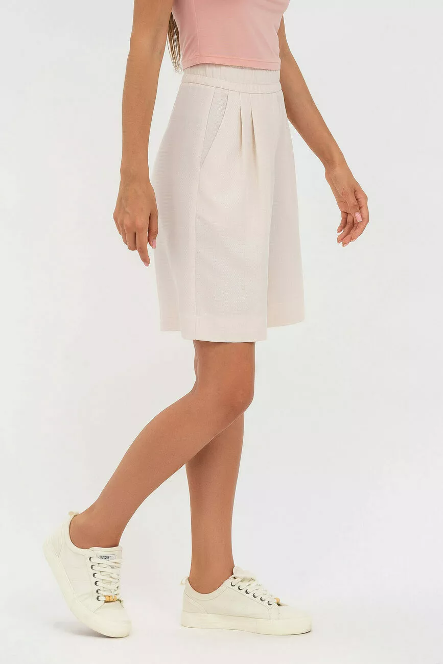 Класичні жіночі шорты-бермуды з нової літньої колекції доповнять ваш гардероб і стануть одним з найулюбленіших елементів! Легкі, вільні, вони пошиті з тонкої костюмної тканини жакардового типу. Висока посадка красиво поєднується з вільним силуетом, пояс на резинці буде значно комфортніший за вшивний, з боків зручні глибокі кишені. За рахунок класичного крою ці жіночі літні шорти підійдуть під взуття на каблуці і низькому ходу.