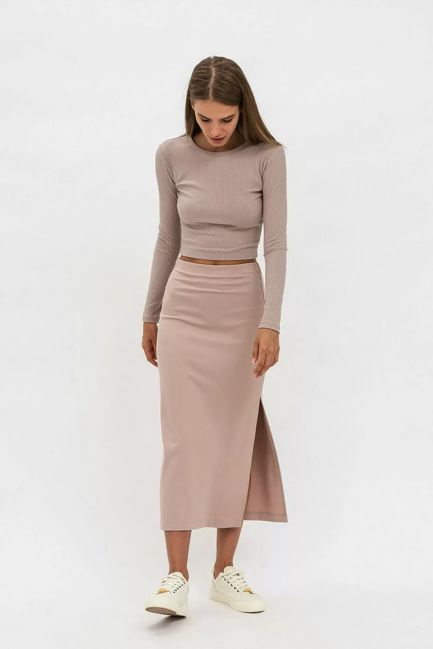 Вишуканість, яка відкриває світові спокусливі лінії фігури – саме така філософія у цієї гарної спідниці у формі олівця. Модель Дадлі виконана у бежевому відтінку з тонкої костюмної тканини. Міді-довжина красиво поєднується з бічними розрізами до середини стегна, є кишені, а пояс на гумці дозволяє посадити виріб по фігурі максимально комфортно.