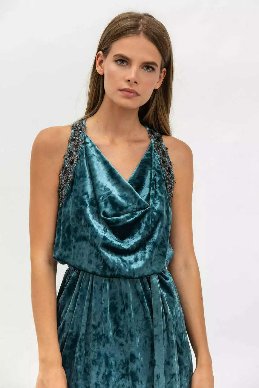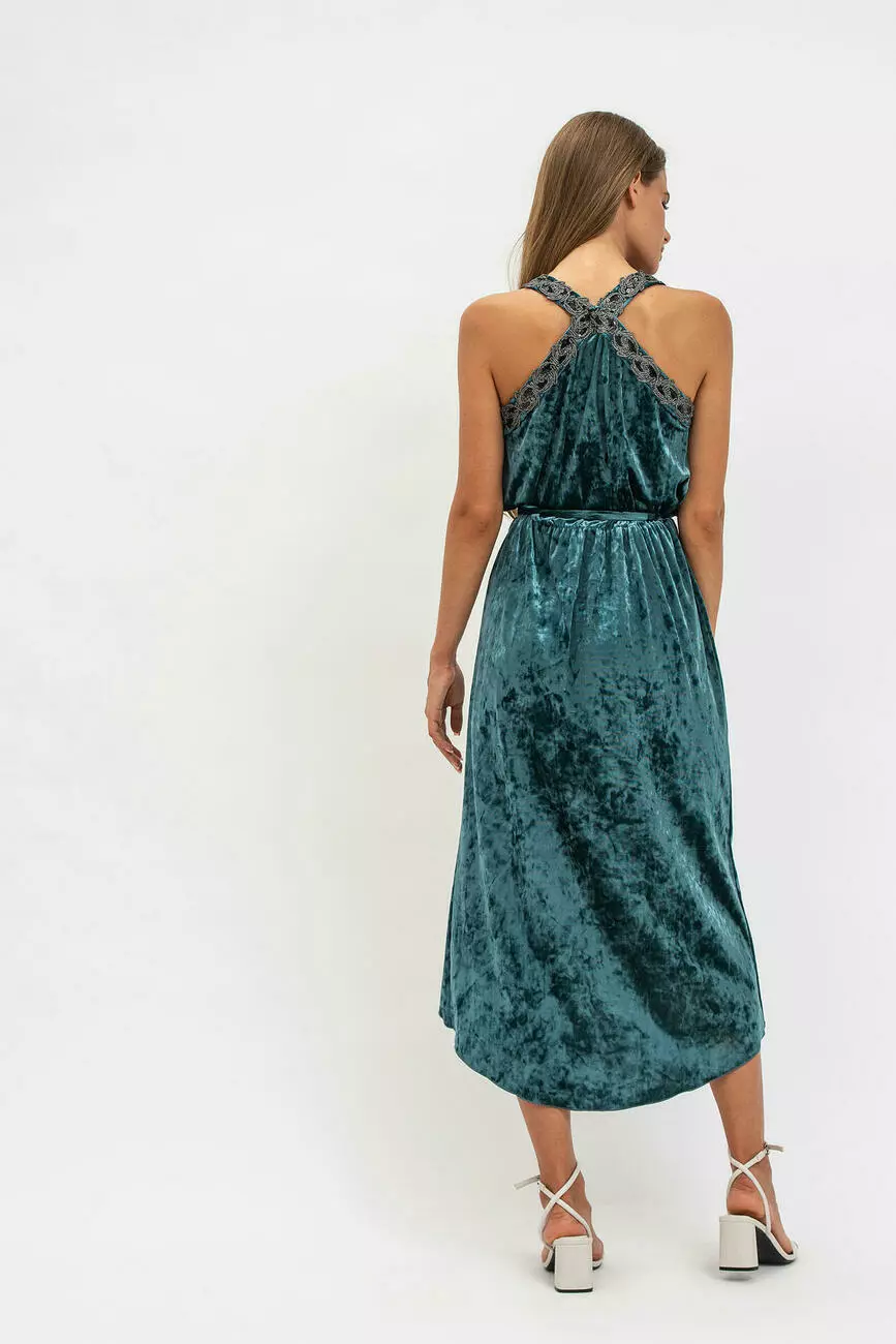 Коктельное платье из велюра с отделкой