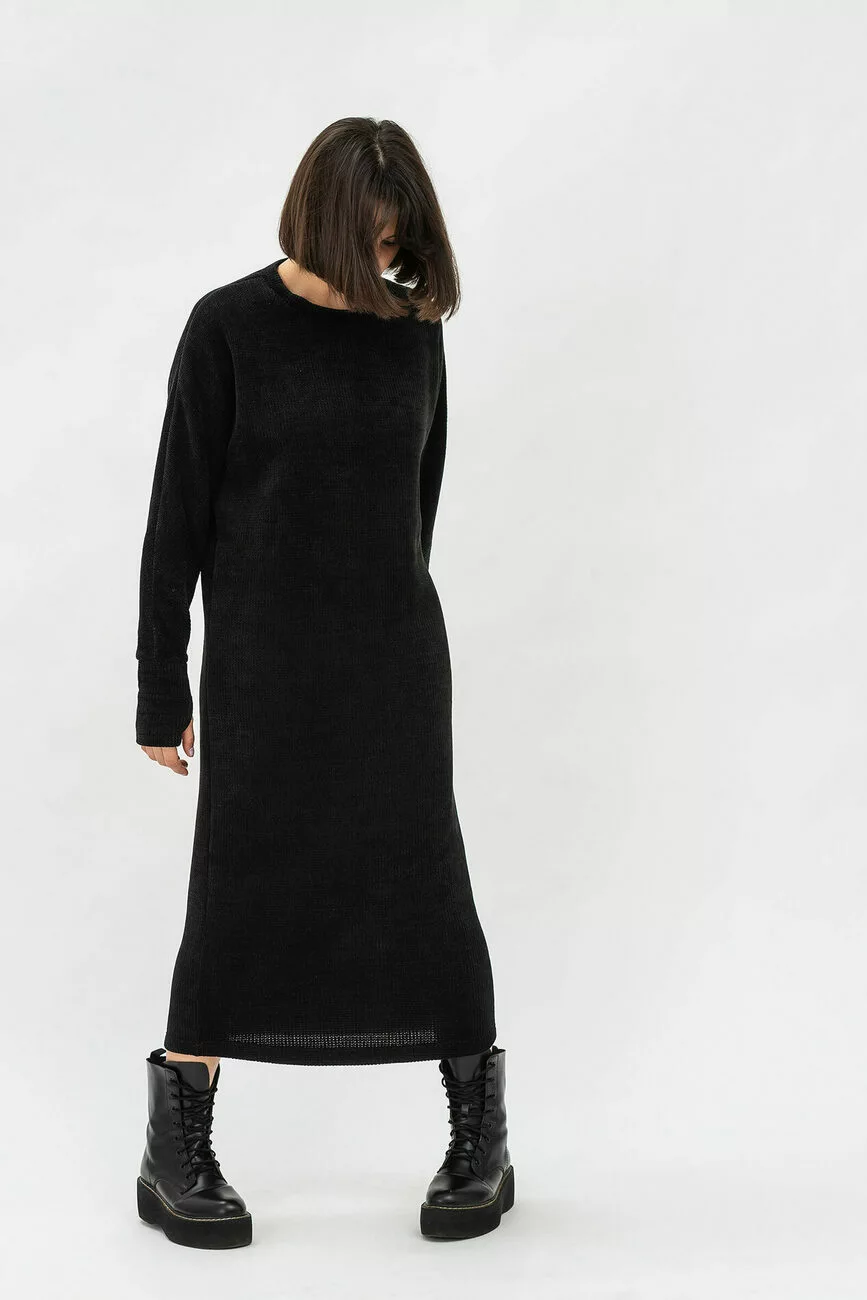 В’язана трикотажна сукня довжиною міді врятує від холоду й у дощ, й у сніг. Вона настільки м»яка та комфортна, що її не хочеться знімати! Відмінна риса моделі – довгі цільнокроєні рукави. Силует вільний, прямий. Підкреслити талію можна паском у тон сукні. У нас ви завжди можете купити сукню через інтернет не виходячи з дому!