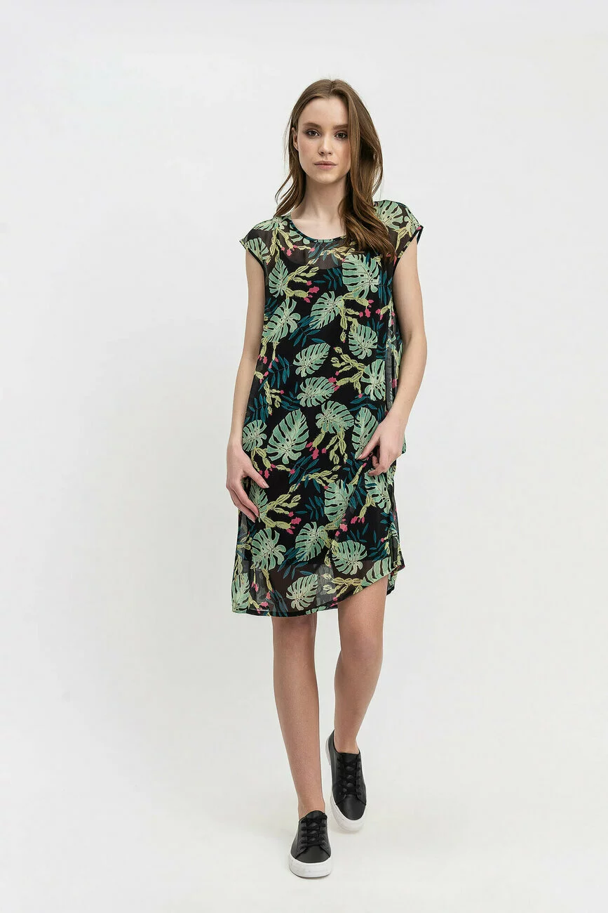 Летнее красивое платье с растительным принтом подарит ощущение свободы и невесомости. Воздушный шифон придает модели дополнительной легкости. Это платье – замечательный вариант на каждый день! В нем вы будет выглядеть свежо и стильно!
