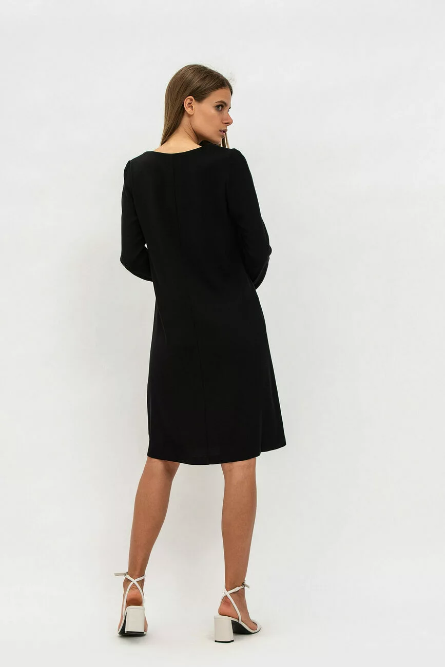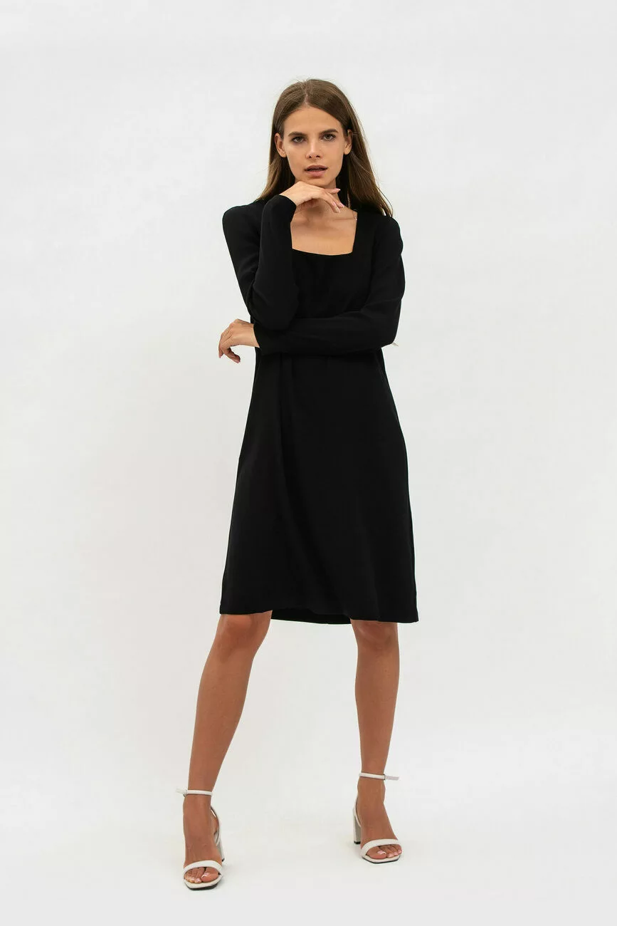 Створити свято навіть у будній день можна за допомогою однієї жіночої сукні! Модель виробу має силует трапеції, який добре згладить недосконалість фігури. Виріз горловини – каре, рукава довгі, злегка завужені. Довжина красивої сукні – трохи вище колін. Рекомендуємо купити сукню класичної форми, яка ніколи не втратить своєї актуальності!