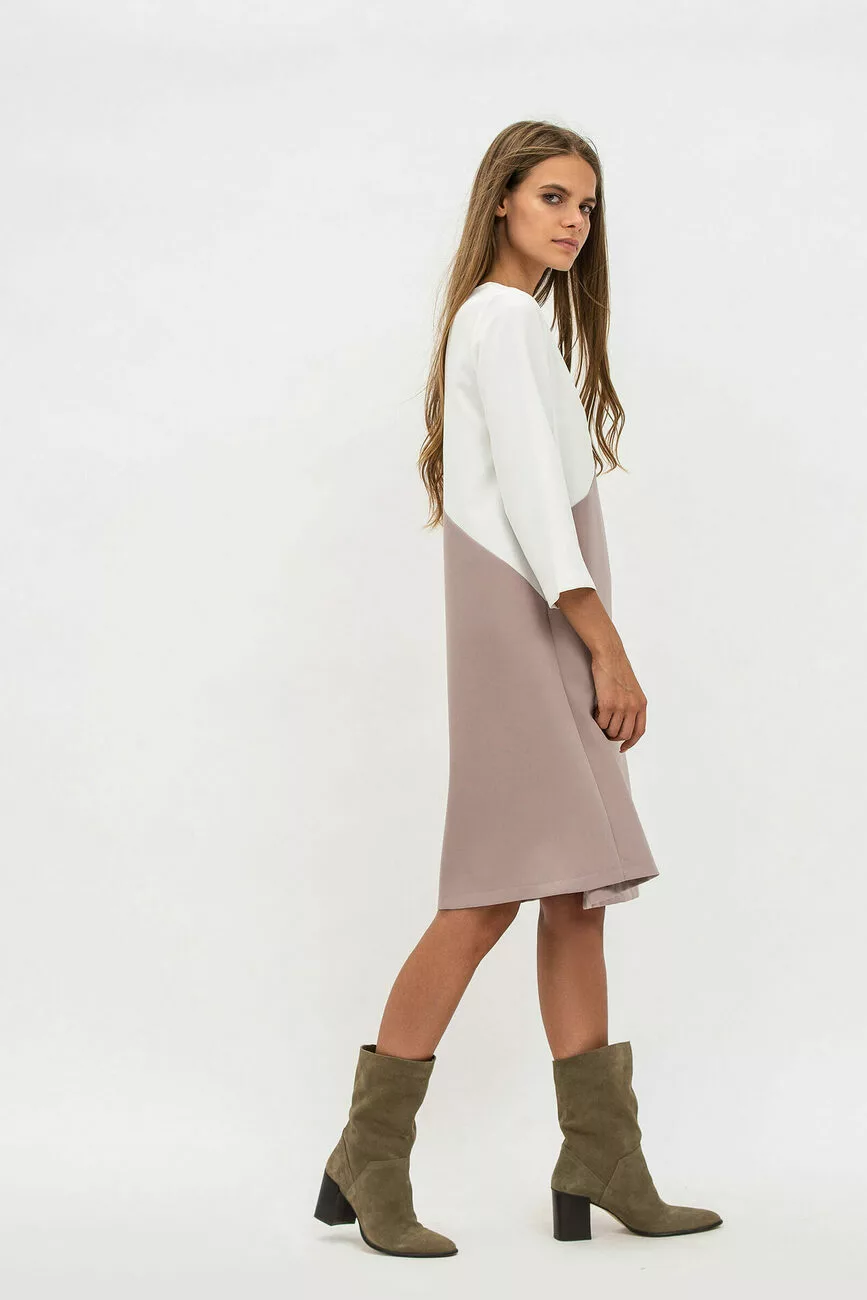Ця елегантна сукня на нашому сайті одягу дуже популярна! Вона зшита з практичної костюмної тканини. Вільний крій у вигляді трапеції можна обирати жінкам з будь-якими параметрами. Виріб має круглий виріз горловини та злегка вкорочені рукави. Додатковий плюс стильної сукні – кольорове рішення, завдяки чому модель виглядає завжди святково!